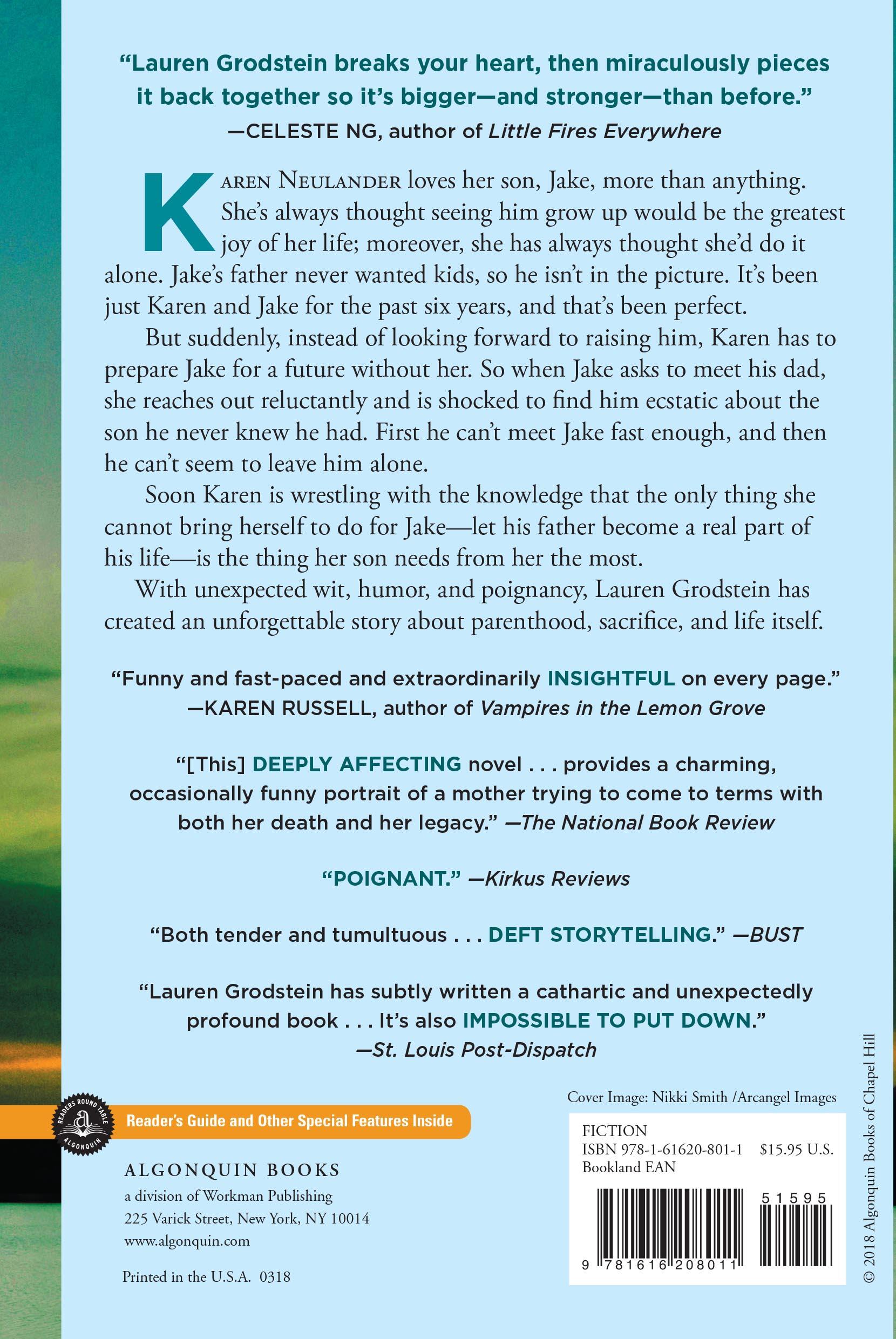 As she struggles to play out her last days in the “right” way for Jake, Karen wrestles with the knowledge that the only thing she cannot bring herself to do for her son—let his father become a permanent part of his life—is the thing he needs from her the most. With heart-wrenching poignancy, unexpected wit, and mordant humor, Lauren Grodstein has created an unforgettable story about parenthood, sacrifice, and life itself.