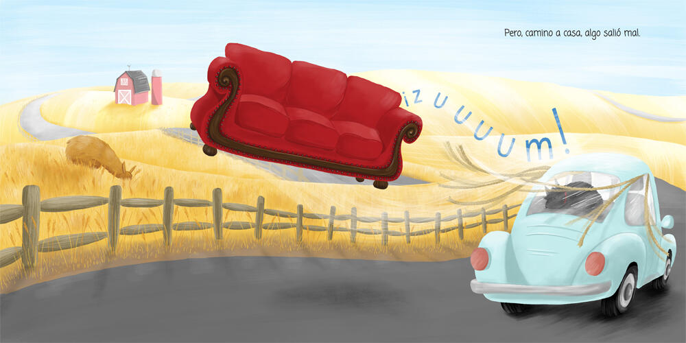 The Lago family really loves their couch. It’s perfect for reading, snuggling, and playing. But all good things come to an end, and, one day, the family must replace it. As they drive home with their new couch, though, it falls off their car and into a field . . . where a llama adopts it. Can the family get its furniture back—and keep llama happy?