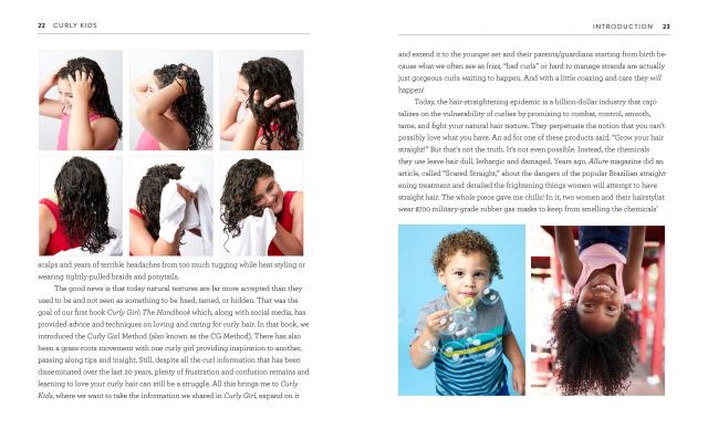 So by helping you and your kids learn new techniques like the Curly Girl Method of “co-washing” (using conditioner to cleanse the hair) and following an easy set of curly dos and don’ts (never “blow-fry” curly hair), Curly Kids delivers a powerful promise: Teach your children how to love those fabulous curls––and with Massey’s help, those curls will be fabulous––and they’ll have the confidence to love all of themselves.