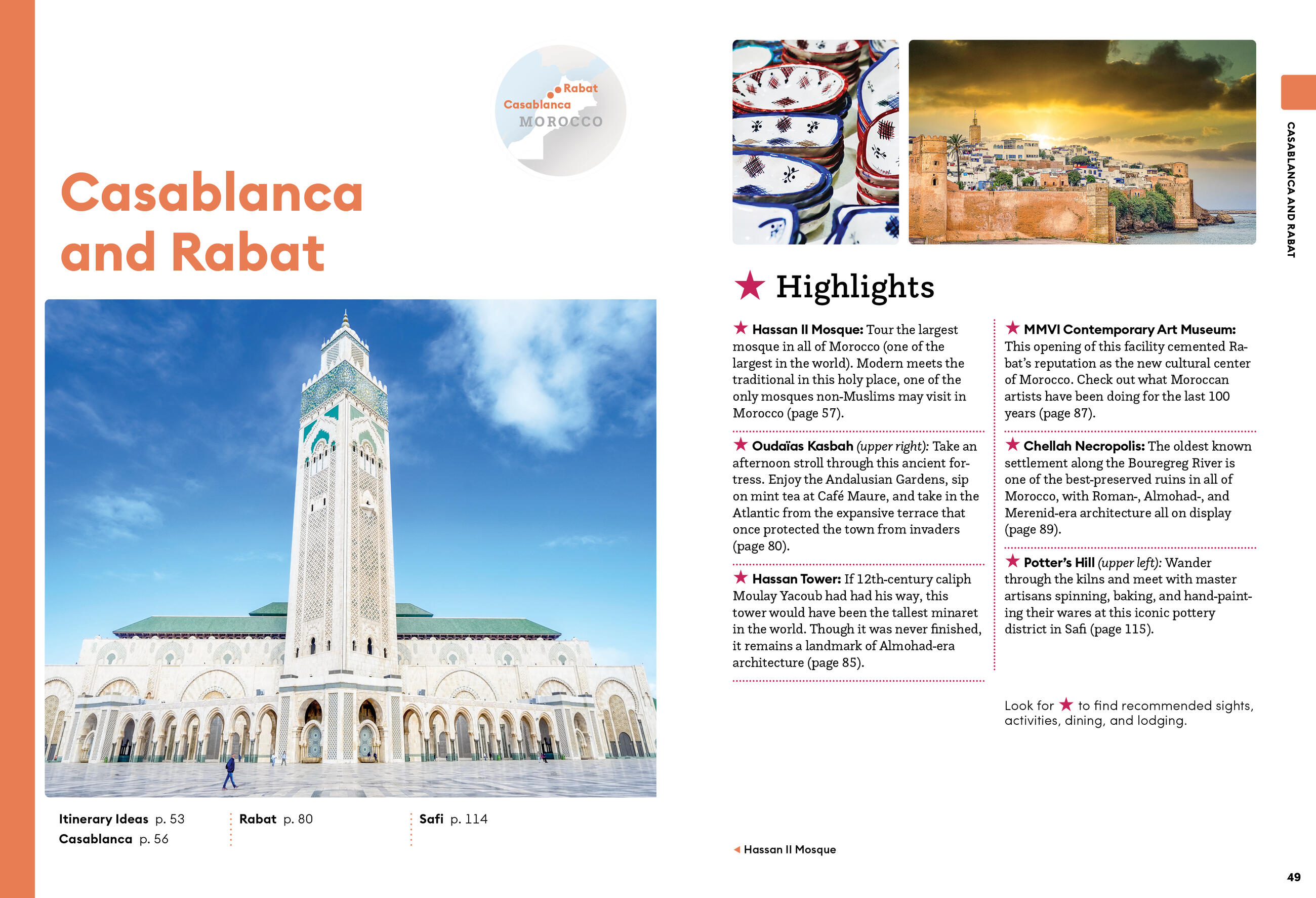 - Handy tools including Darija and French phrasebooks, visa information, and travel tips for families, seniors, travelers with disabilities, women, travelers of color, and LGBTQ travelers