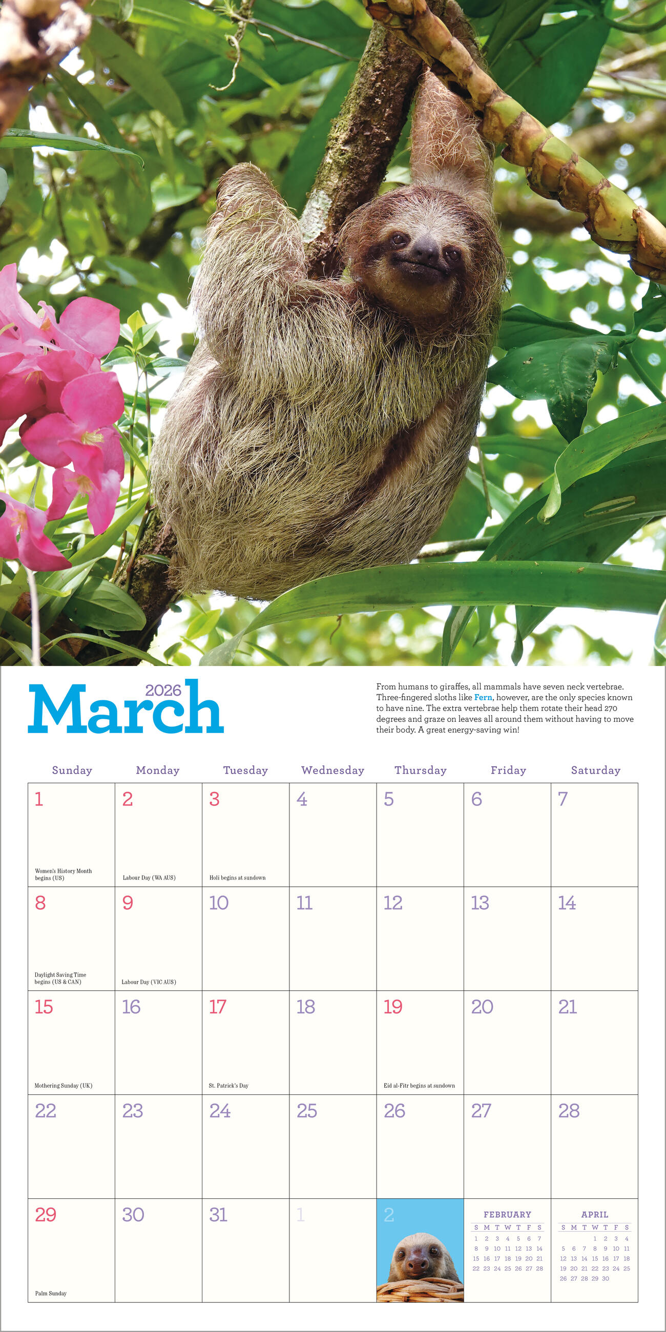 Original Sloths Wall Calendar 2026