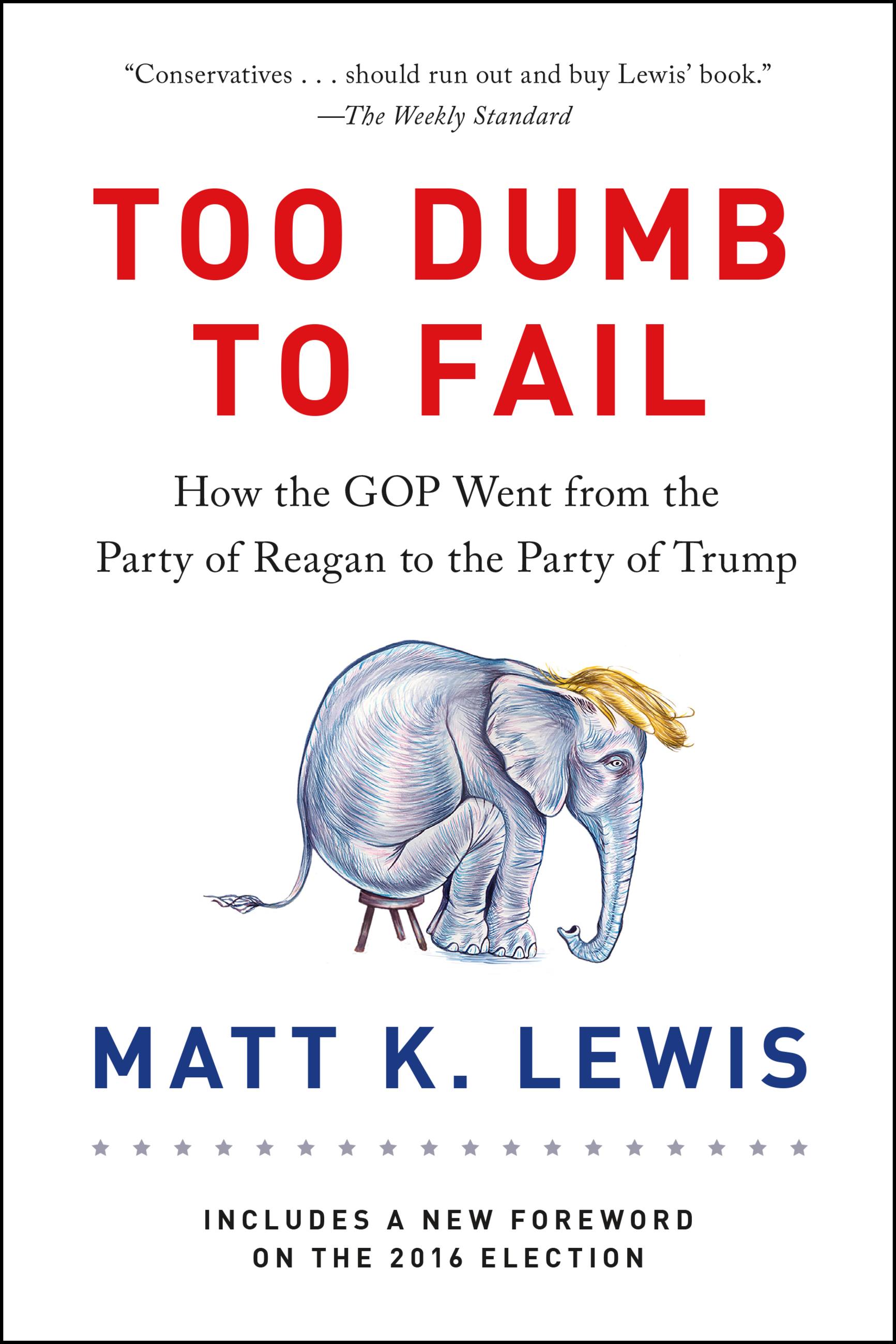 "Too Dumb to Fail... functions as a smart, sobering pre-mortem on 2016. Now, most books about 'fixing' conservatism are written by liberal concern-trolls who secretly want to kill it. But Lewis is an actual, real-deal conservative.... This, ultimately, is what Lewis really wants: A conservative movement that honors its intellectuals, that works through its ideological problems honestly, and that doesn't rush to glorify hucksters.... If you put Donald Trump or Sarah Palin back in 1980, they couldn't last a week in the ring with the Gipper. Because back then, conservatives expected more from their leaders. Matt Lewis thinks we should expect more today, too. He's probably right."Jonathan V. Last, The Weekly Standard
