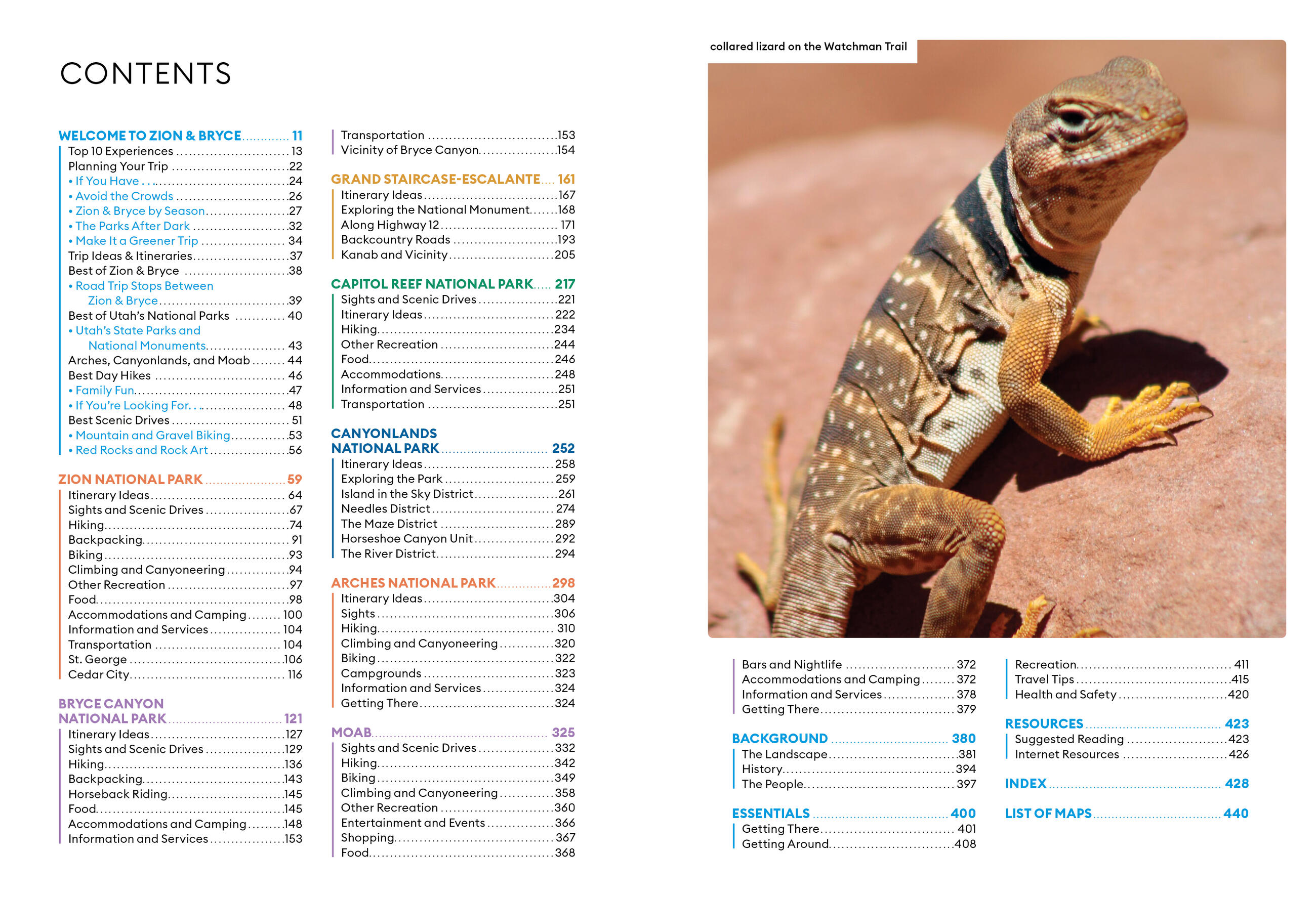 - How to get there: Up-to-date information on gateway towns like Moab, park entrances, park fees, and tours