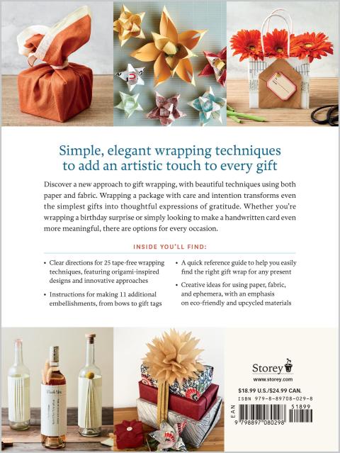 Origami Gift Wrap offers a new approach to gift wrapping, with easy, elegant wrapping techniques designed to accommodate every gift. With clear step-by-step photos and a variety of wrapping techniques—from folded boxes to fabric wraps—artist Megumi Inouye’s approach to wrapping transforms a simple gift into an act of care and intention. Whether you’re wrapping a last-minute host gift or endless holiday presents, the beautiful designs transform recycled and repurposed materials into stunning gift wrappings that are sure to delight. From simple folded gift wraps for everyday presents to more elaborate bows and tags for special keepsakes, you’ll find techniques for every occasion.