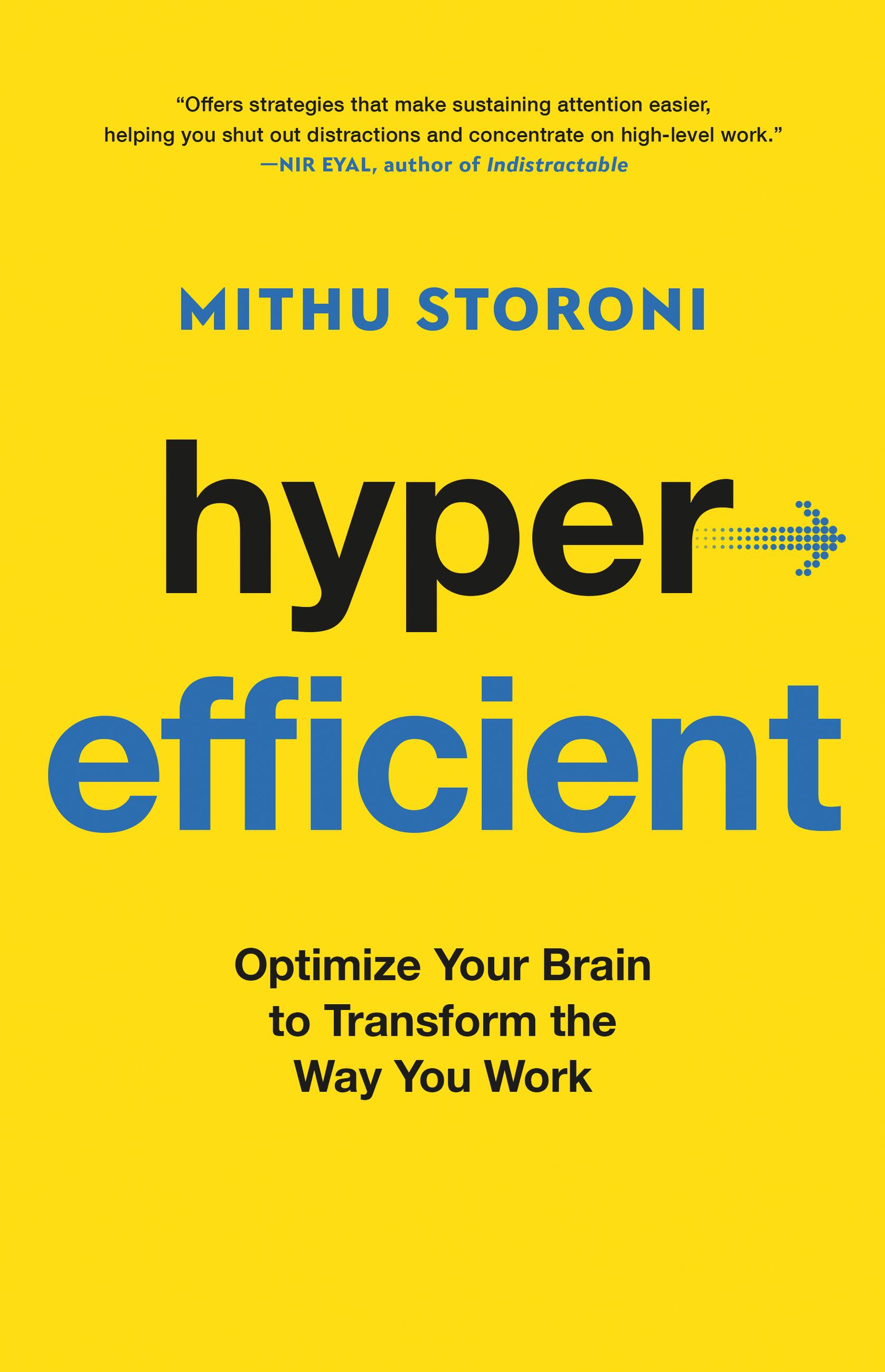 “Hyperefficient offers a new approach to organizing your work—one that is designed for your human mind and body. Storoni teaches you how to find your flow and slow down so that you can get far. In a fast-moving world, Hyperefficient is a reminder that with self-awareness and a few environmental modifications, we can all be better at achieving our life goals. Such a fun and useful read!”Ayelet Fishbach, Professor of Behavioral Science and Marketing at the University of Chicago Booth School of Business and author of Get it Done: Surprising Lessons from the Science of Motivation