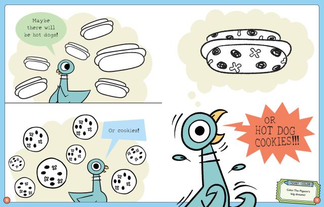 Hot dogs! Cookies! HOT DOG COOKIES!?! Color The Pigeon’s favorite things in this action-packed coloring book. Plus, meet NANA-DACTYL! She has an important invitation for The Pigeon. Can YOU get The Pigeon to the Bus Depot on time for the special event? The Duckling, Puppy, and a flock of friends are here to help. But remember . . . DON’T LET THE PIGEON COLOR THIS BOOK!