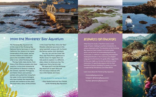 In a great tide pool along the central coast of California, what from afar looks like just a rocky outcropping comes to life with color and drama as a hermit crab searches for a new, larger shell. The crab must survive extreme conditions through the course of a tide cycle–encountering crashing waves, hungry predators, and a neighborhood of diverse animals–in order to find her new home. While following the crab’s story through gorgeous, paneled illustrations, readers will also learn about the adaptations of a wide variety of creatures, why tides happen, the tide pool food web, and more through sidebars and photos.