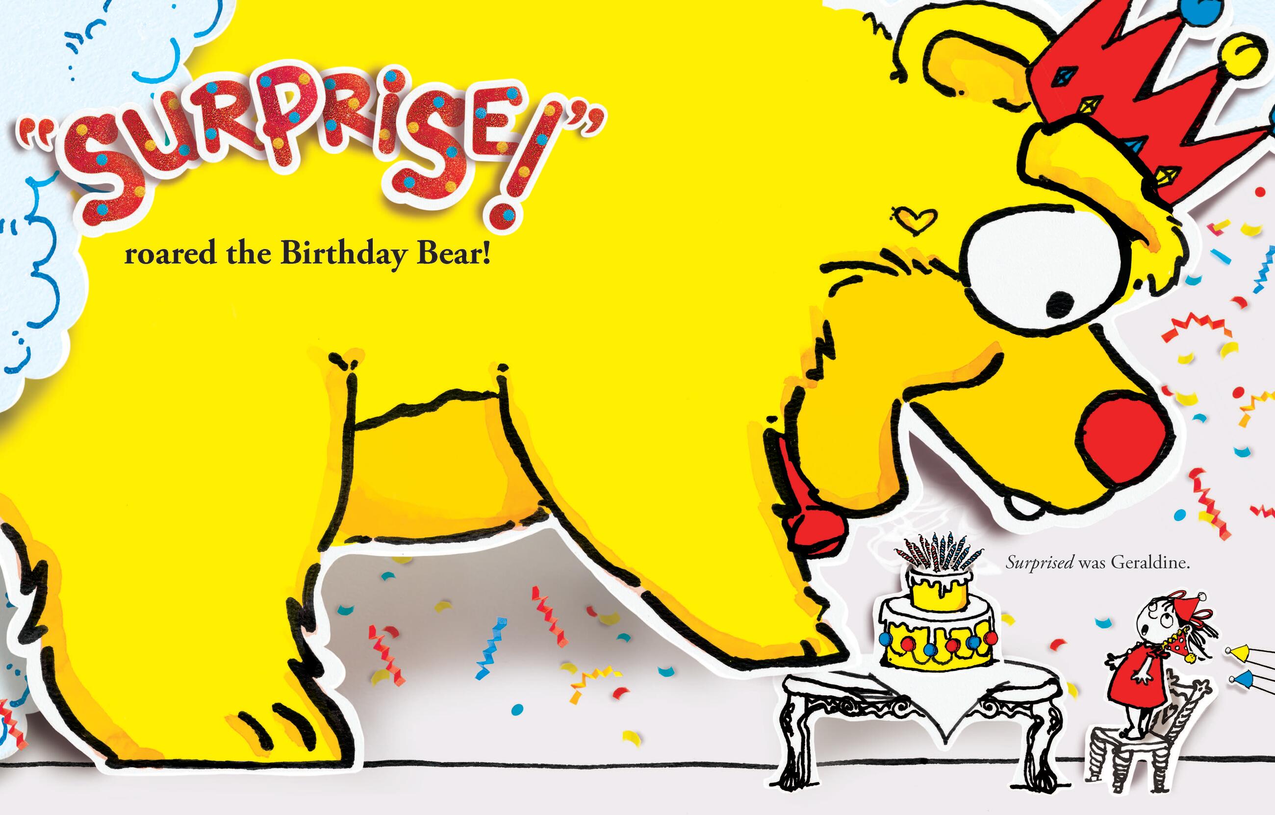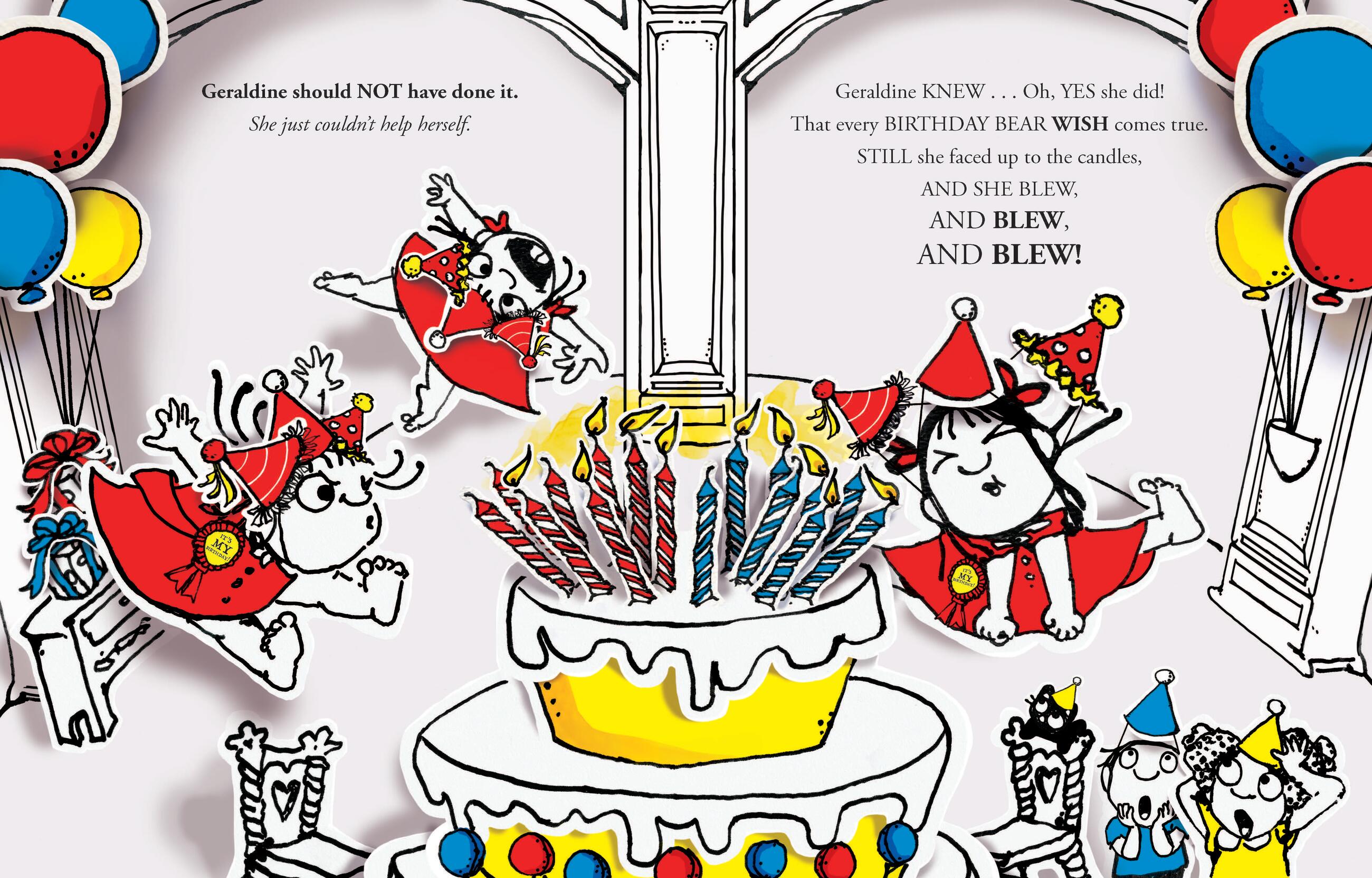 And no one would want that. Right? Well, no one except Geraldine Grunion, who blows out all her birthday candles and shouts as loud as she possibly can, “BIRTHDAY BEAR!”