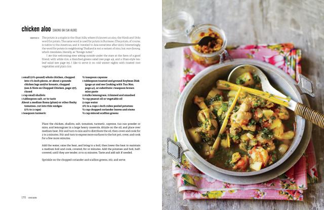 Salads are one of the best entry points into the glories of this cuisine, with sparkling flavors—crispy fried shallots, a squeeze of fresh lime juice, a dash of garlic oil, a pinch of turmeric, some crunchy roast peanuts—balanced with a light hand. The salad tradition is flexible; Burmese cooks transform all kinds of foods into salads, from chicken and roasted eggplant to spinach and tomato. And the enticing Tea-Leaf Salad is a signature dish in central Burma and in the eastern hills that are home to the Shan people.