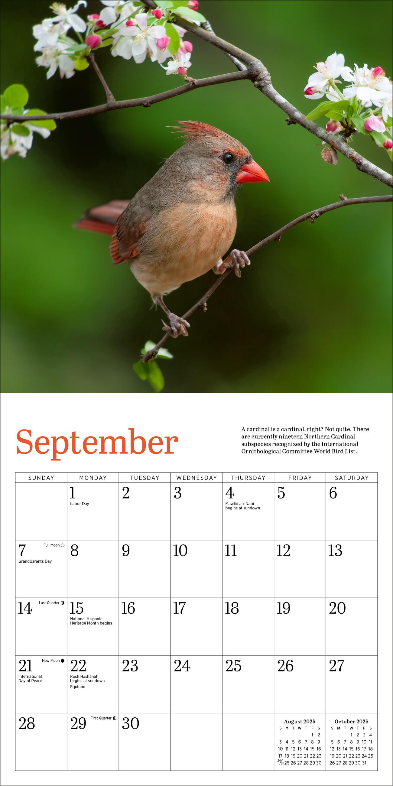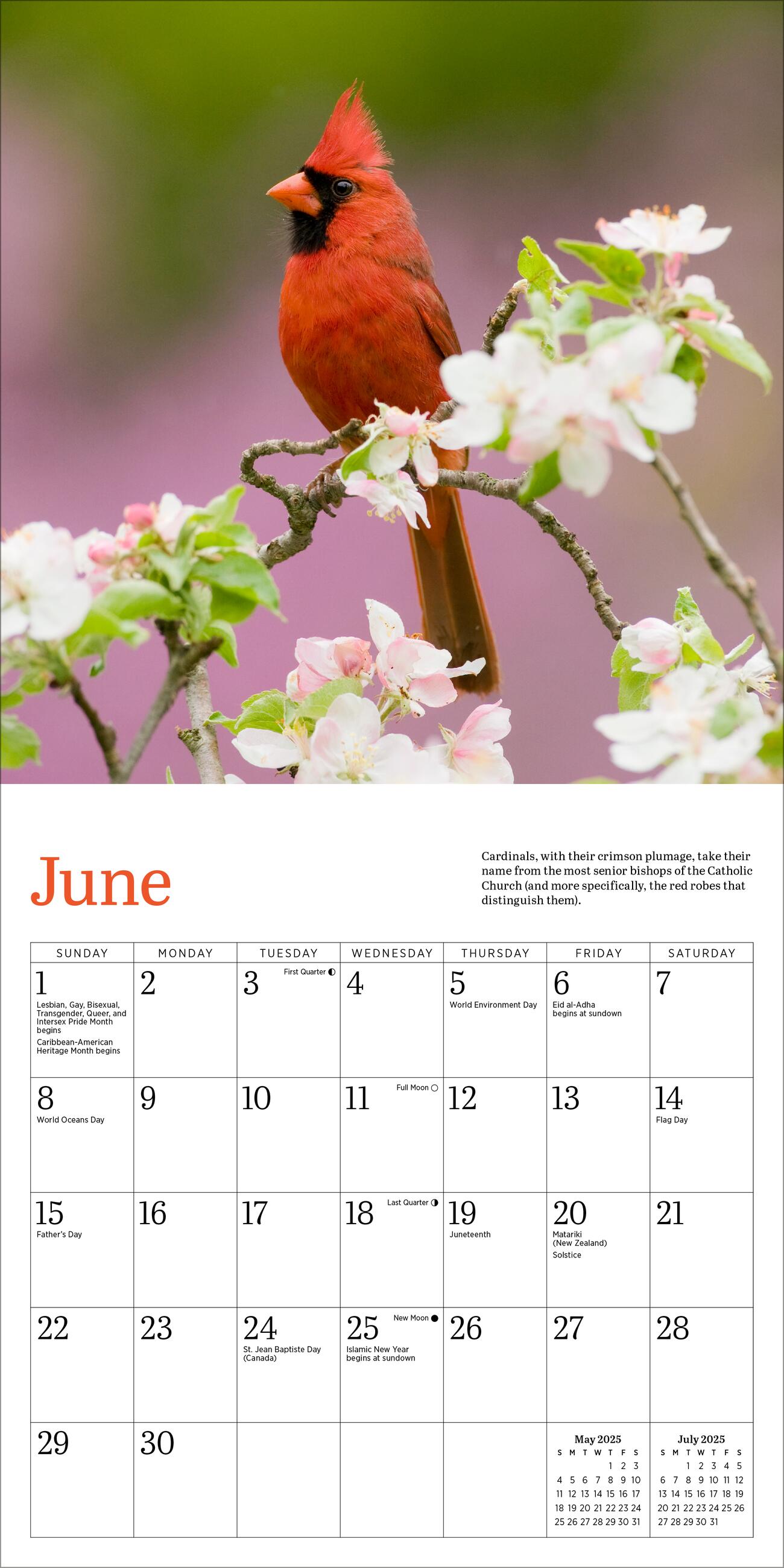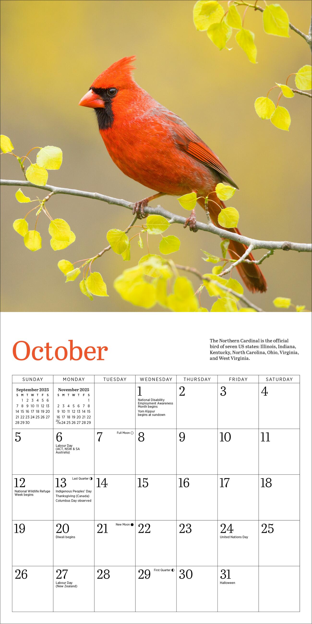 - VIBRANT AND LIVELY: Stunning monthly photographs capture cardinals’ iconic bright red plumage. Each image is accompanied by fun facts, including how to attract them to your yard or feeder.