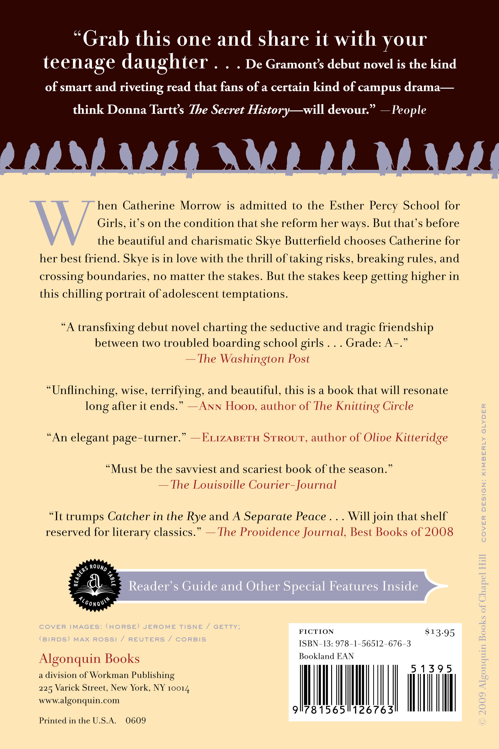 "The kind of smart and riveting read that fans of a certain kind of campus drama—think Donna Tartt's The Secret History — will devour...There's romance, betrayal, a gorgeous scholarship boy and a spot-on rendering of the queasy regret you sometimes feel when friends from separate orbits meet. Grab this one and share it with your teenage daughter.”People, four stars