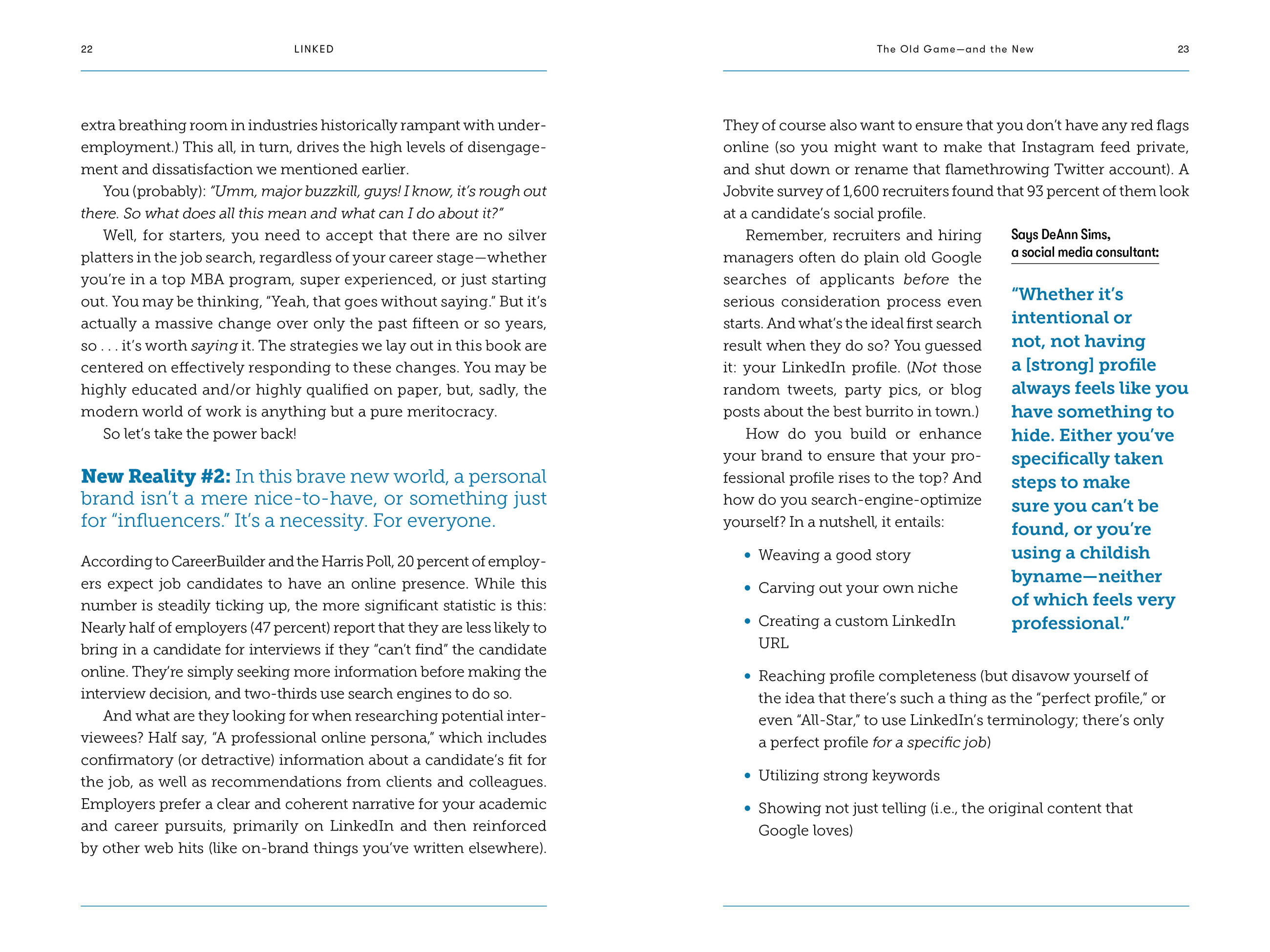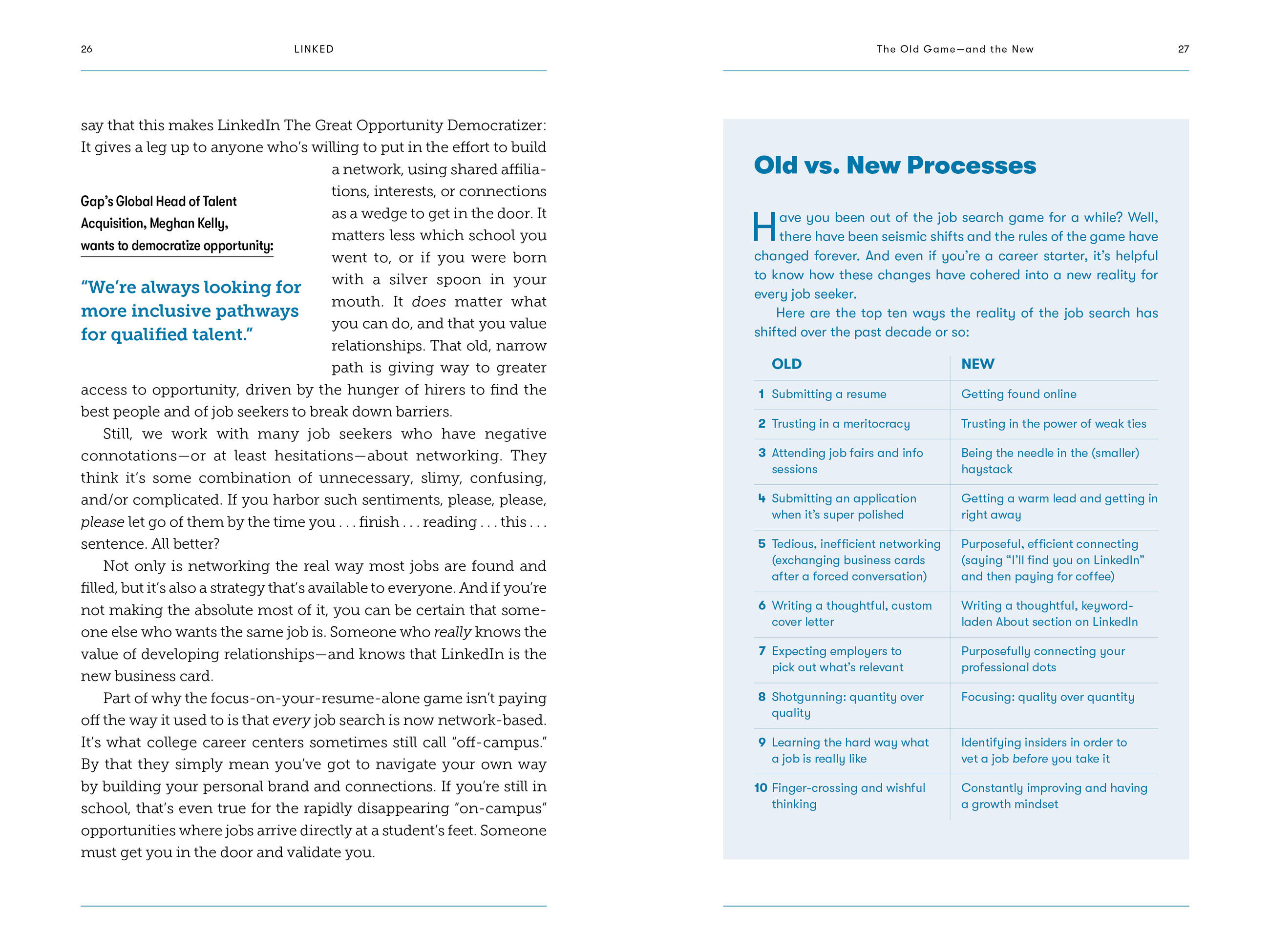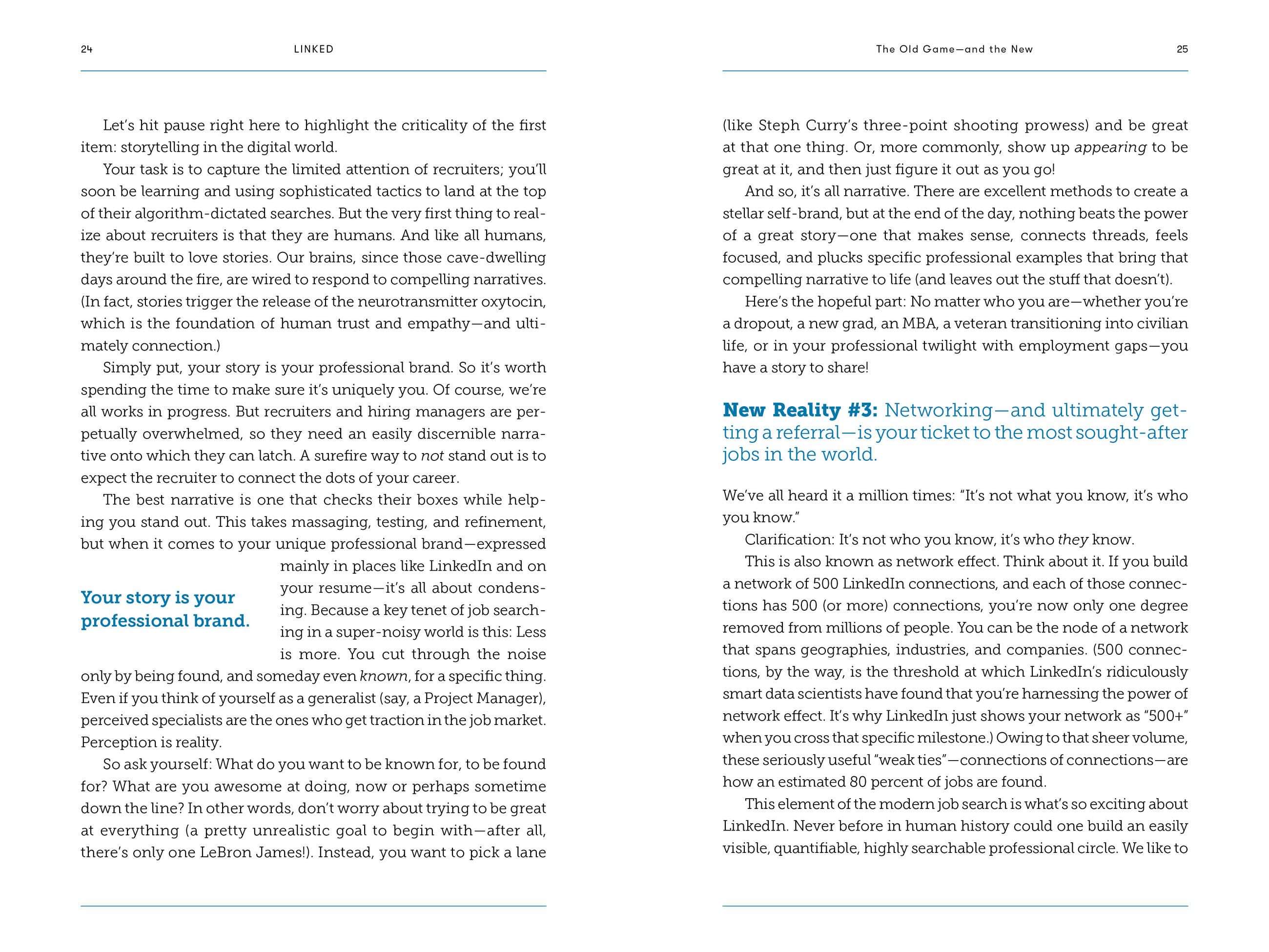 Clear, lively, and decidedly practical, Linked shows how to burnish your personal brand so recruiters come to you. Tap the power of the network effect and turn anyone into an invaluable referral. Think like employers and focus your profile to get noticed, get considered, and get hired. And game both the search algorithm and Applicant Tracking Systems used by nearly every employer in every economic sector.
