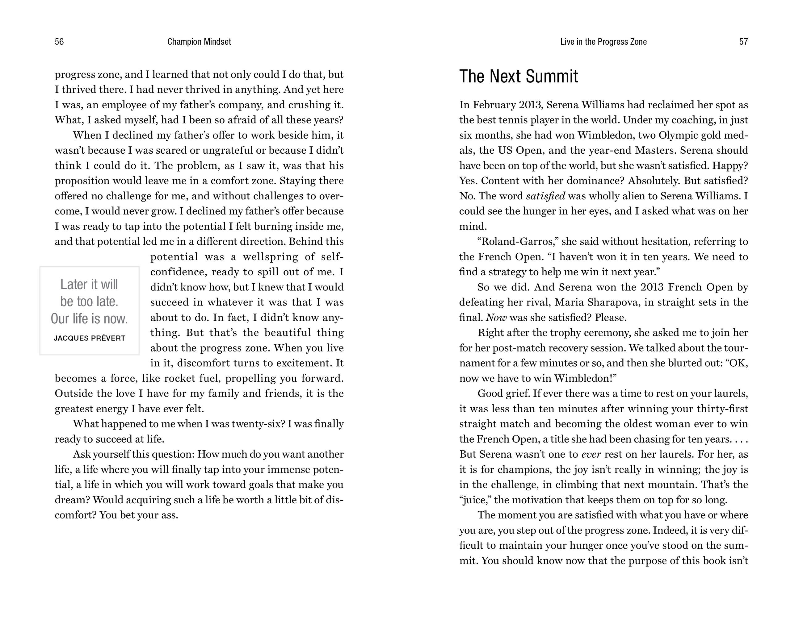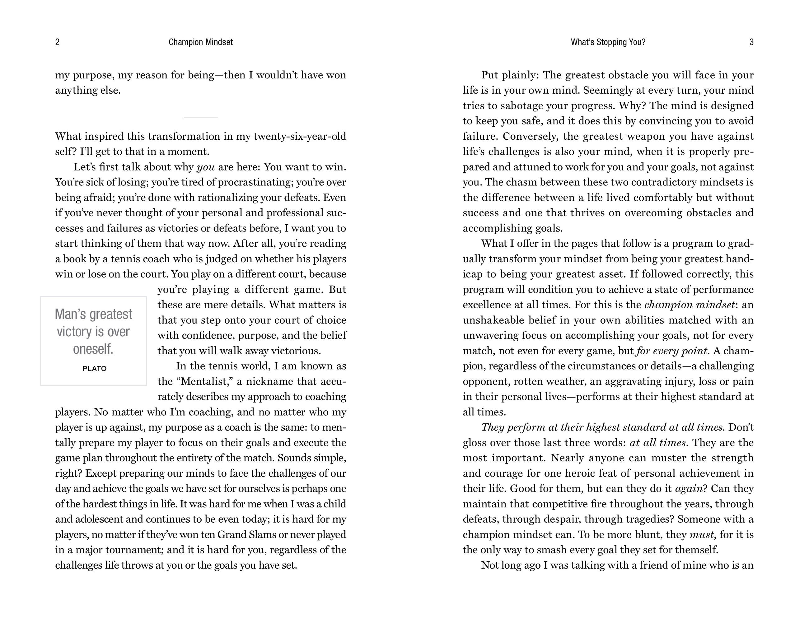 "Patrick Mouratoglou is more than my trusted friend. I respect him as a true visionary in the world of tennis and beyond. His book captures the essence of what it takes to succeed at the highest level not just in tennis but in life…. [It] is the perfect tool to help unlock your full potential and cultivate a champion's mentality.”Mike Tyson