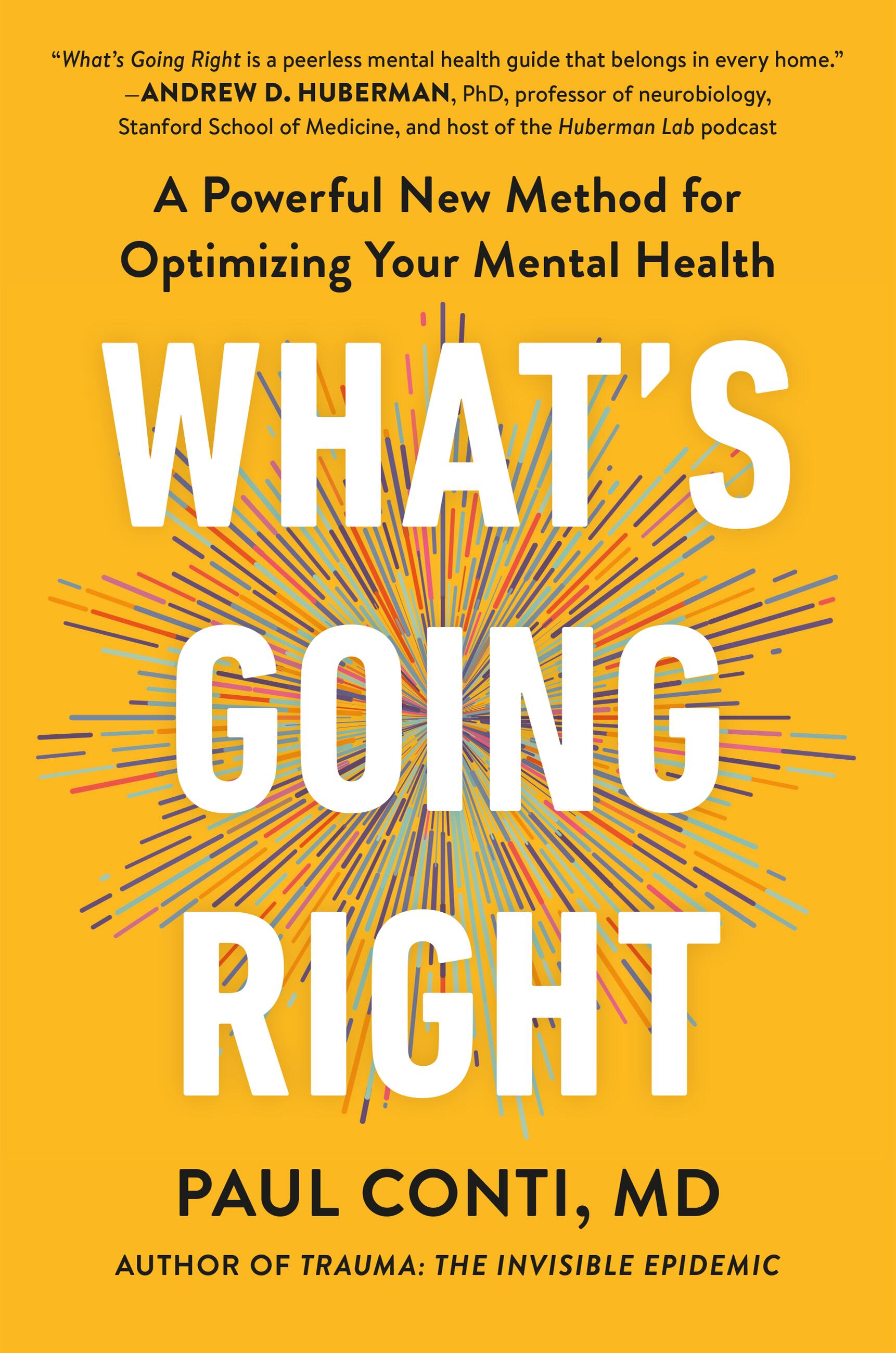 Dr. Conti’s ability to empower people beyond those he is able to meet was strongly present in his first book, Trauma: The Invisible Epidemic. This second book, What's Going Right, promises to amplify his impact, and extended it to a much wider audience. It is a self-help guide to understanding yourself and creating your own healthy mental health. This includes approaching many of the most common mental health issues with self-awareness, reflectiveness, and practical routes to change. My guess is that this book will become required reading not just for patients and their therapists, but for people in search of a happier and healthier life.Bernard Kruger, MD, Comprehensive Physician, Oncologist, Cofounder of Sollis Health