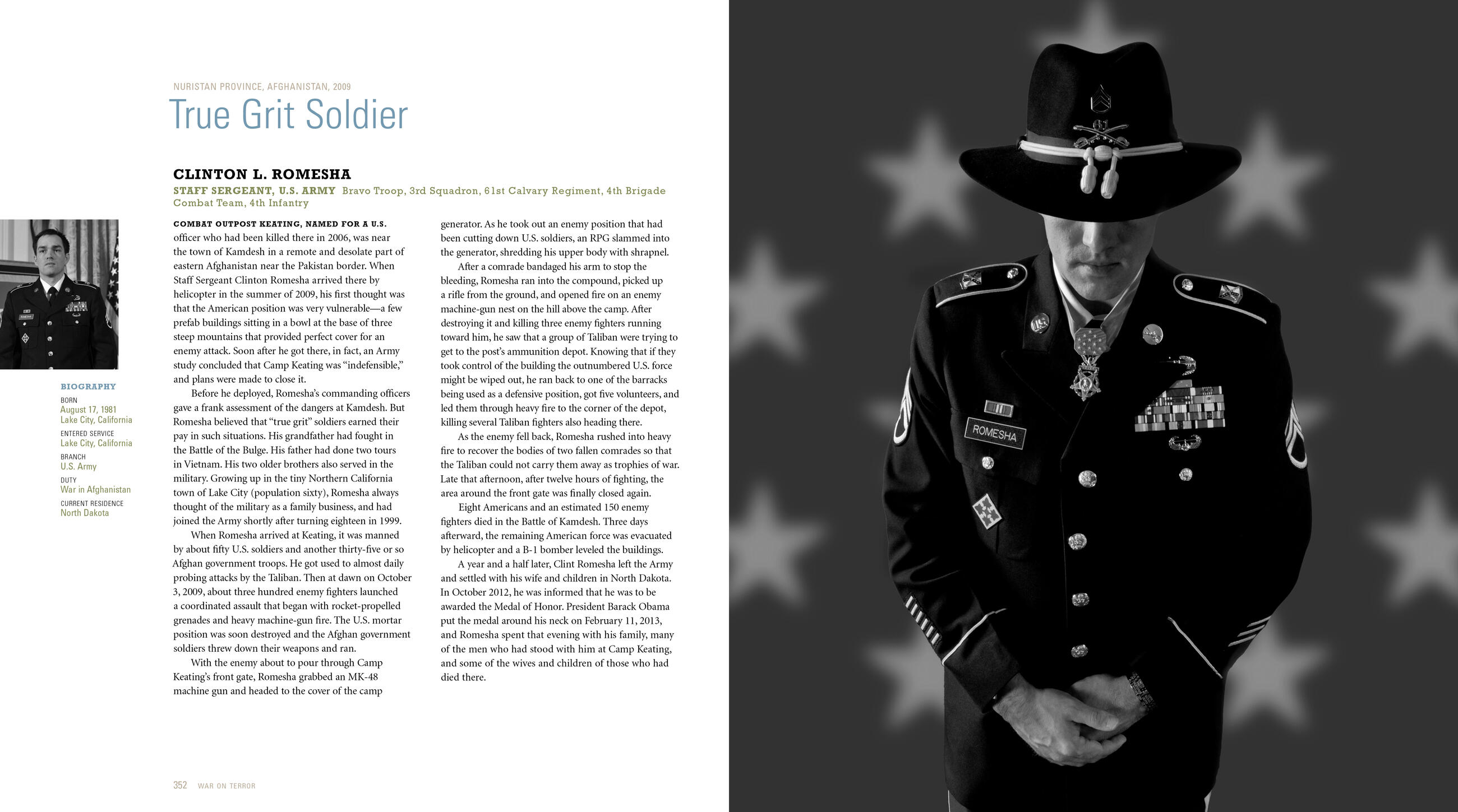 Eight veterans from the war in Afghanistan have been awarded our nation’s highest honor for valor in combat since the publication of the third edition of Medal of Honor, including Edward C. Byers, Jr., the newest living recipient and a member of Navy SEAL Team Six, and Clint Romesha, author of the New York Times bestselling Red Platoon. And nearly 50 years after their service, four Vietnam veterans have also since received the recognition they so richly deserve. Now these men rightly take their place in the pages of this revised and updated edition.