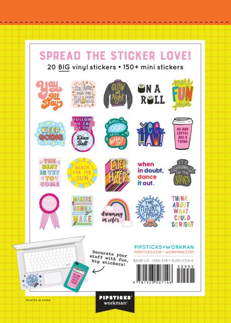 Life is just better with stickers, and this little book of BIG vinyl stickers proves just that! Decorate your laptop, bike, water bottle, phone, or dresser (the possibilities are endless!) with these super-sized designs, and brighten every day with a little sticker magic.