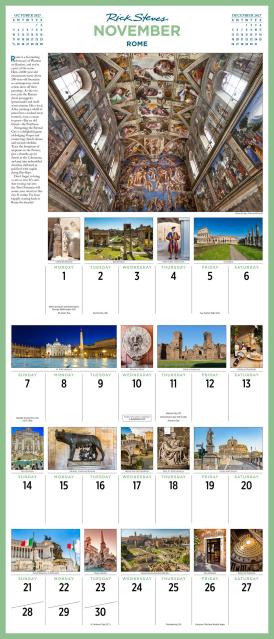 - GREAT GIFT: Ideal for anyone who wishes they could spend all year traveling, this is the ultimate calendar for Europe aficionados. Each month features a bucket-list destination with a map, itinerary, highlights, and over 20 photos throughout the grid.