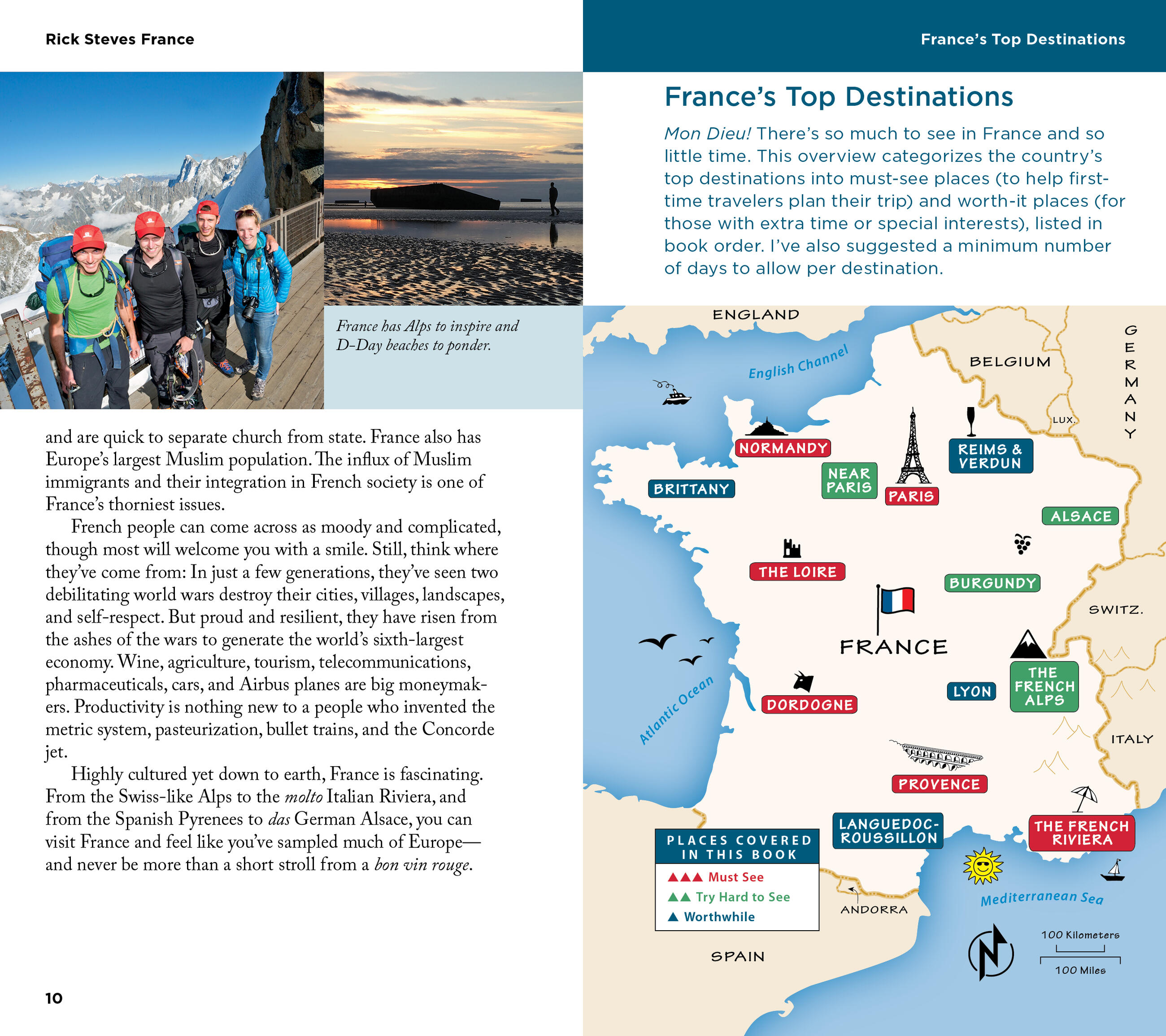 - Coverage of Paris, Chartres, Normandy, Mont St-Michel, Brittany, The Loire, Dordogne, Languedoc-Roussillon, Provence, The French Riviera, Nice, Monaco, The French Alps, Burgundy, Lyon, Alsace, Reims, Verdun, and much more