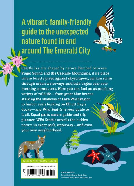 Seattle is a city shaped by nature. Perched between Puget Sound and the Cascade Mountains, it’s a place where forests press against skyscrapers, salmon swim through urban waterways, and bald eagles soar over morning commutes. Despite its reputation for tech and coffee culture, Seattle is also home to an astonishing variety of wildlife, from great blue herons stalking the shallows of Lake Washington to harbor seals basking on Elliott Bay’s docks, and Wild Seattle is your guide to it all. Equal parts nature guide and trip planner, Wild Seattle unveils the hidden nature in every park and waterway–and even your own neighborhood.
