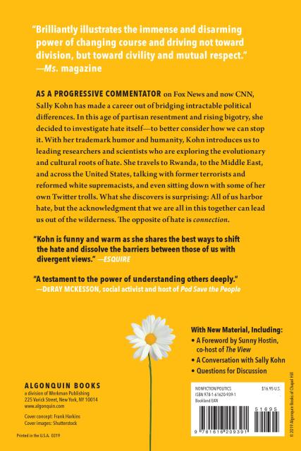 As a progressive commentator on Fox News and now CNN, Sally Kohn has made a career out of bridging intractable political differences. In this age of dangerous partisan resentment and rising bigotry, she decided to investigate hate itself–to better consider how we can stop it. With her trademark humor and humanity, Kohn introduces us to leading researchers and scientists who are exploring the evolutionary and cultural roots of hate. She travels to Rwanda, to the Middle East, and across the United States, talking with former terrorists and reformed white supremacists, and even sitting down with some of her own Twitter trolls. What she discovers is surprising: All of us harbor hate but the powerful acknowledgment that we are all in this together can lead us out of the wilderness. The opposite of hate is connection.