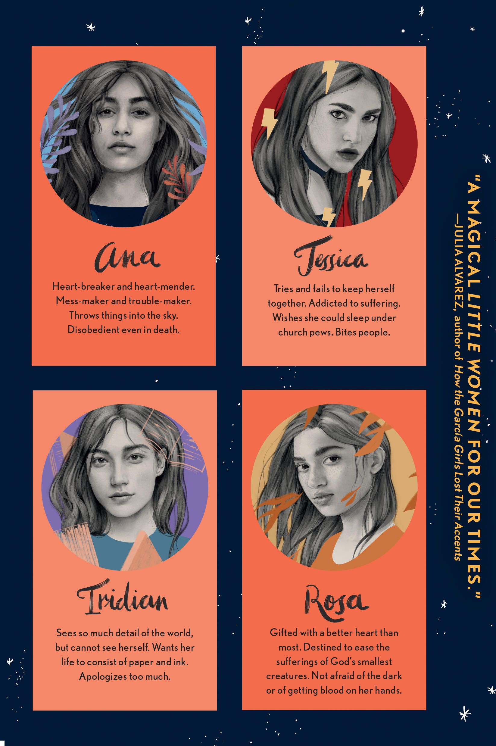 * “Little Women meets The Virgin Suicides with a magical realist twist in this evocative and lovely novel . . . An engaging, heartfelt exploration of the multifaceted inner lives of teen girls and sisterhood.”School Library Journal, starred review