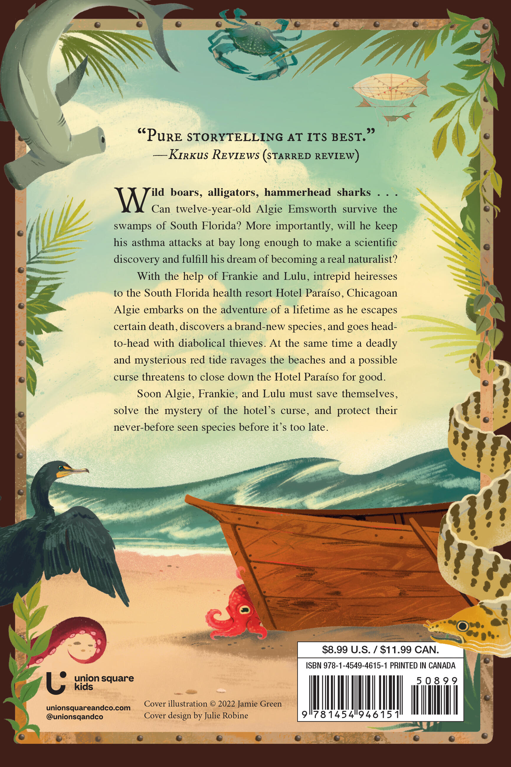 With the help of Frankie and Lulu, intrepid heiresses to the Hotel Paraíso, Algie embarks on the adventure of a lifetime as he escapes certain death, discovers a brand-new species, and goes head-to-head with diabolical thieves, all while a deadly and mysterious red tide ravages the beaches and a possible curse threatens to close down the Hotel Paraíso for good. Can Algie, Frankie, and Lulu save themselves, solve the mystery of the hotel’s curse, and save their never-before-seen species?