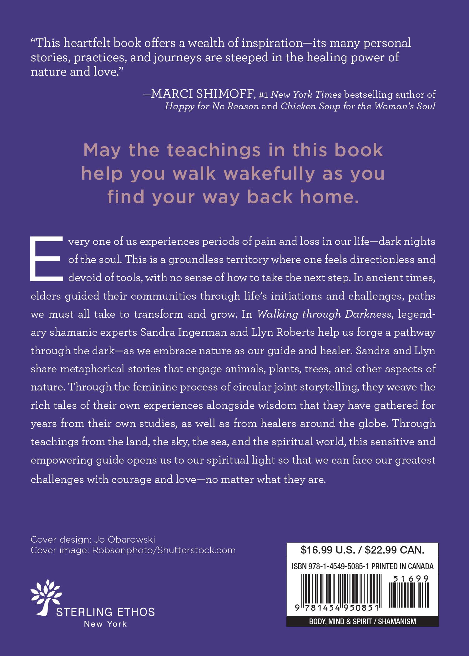 Every one of us experiences periods of pain and loss in our life—dark nights of the soul. This is a groundless territory where one feels directionless and devoid of tools, with no sense of how to take the next step. In ancient times, elders guided their communities through life’s initiations and challenges, paths we must all take to transform and grow. In Walking through Darkness, legendary shamanic experts Sandra Ingerman and Llyn Roberts help us forge a pathway through the dark—as we embrace nature as our guide and healer. Sandra and Llyn share metaphorical stories that engage animals, plants, trees, and other aspects of nature. Through the feminine process of circular joint storytelling, they weave the rich tales of their own experiences alongside wisdom that they have gathered for years from their own studies, as well as from healers around the globe. Through teachings from the land, the sky, the sea, and the spiritual world, this sensitive and empowering guide opens us to our spiritual light so that we can face our greatest challenges with courage and love—no matter what they are.