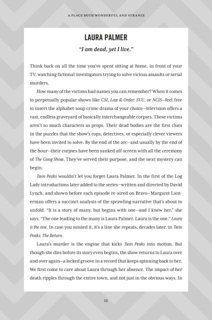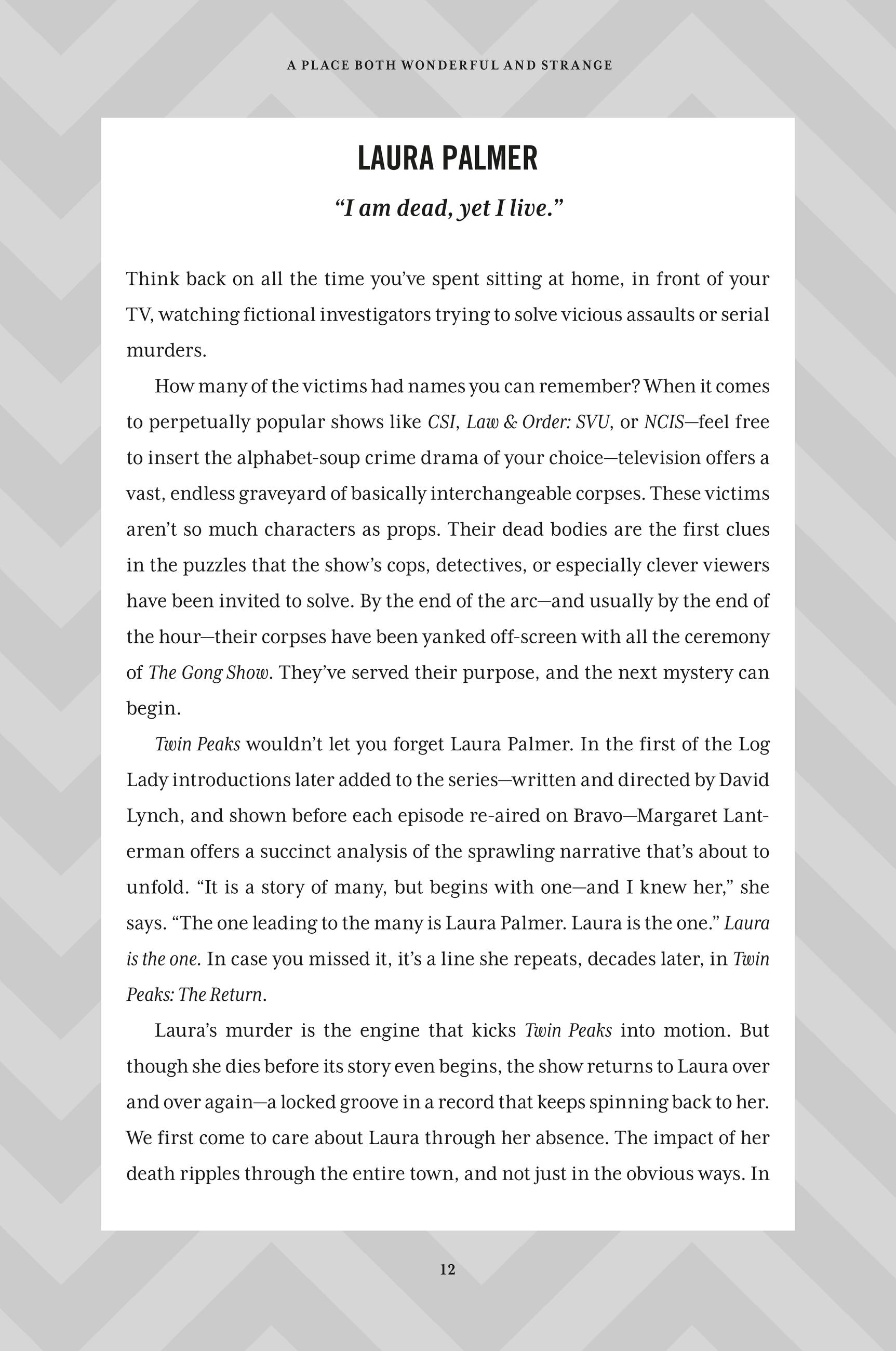 “A Place Both Wonderful and Strange delivers a full account of the life, death, and resurrection of one of the most influential television shows in historyI>Twin Peaks. Author Scott Meslow covers it all. Give yourself a present and read this book!”John Thorne, author of Ominous Whoosh: A Wandering Mind Returns to Twin Peaks