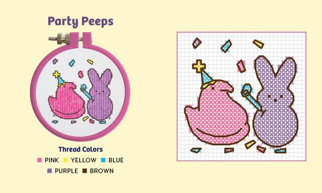 - Book Included: Fully illustrated mini book with simple cross-stitching instructions and 4 easy patterns (Party Peeps; Two Peeps Are Better Than One; Live, Laugh, Peeps; Peeps Is My Superpower)