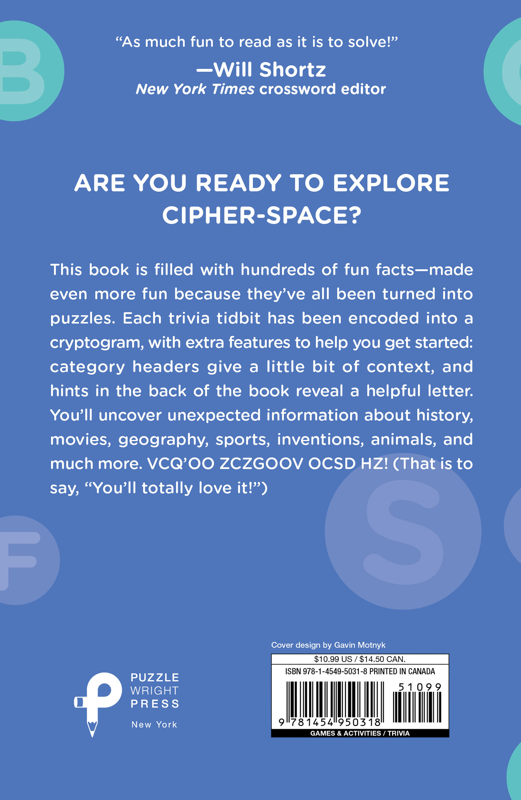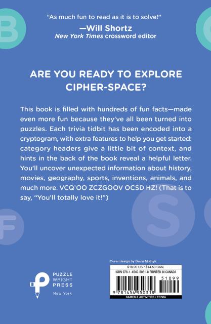 Crack the code and unlock a world of fun trivia in this thrilling cryptogram puzzle book! Packed with 300 cryptogram puzzles that reveal fascinating facts, you’ll enjoy hours of mind-bending challenge with the ultimate pay-off: trivia! Get ready to exercise your brain and discover intriguing tidbits of knowledge along the way with the Trivia Cryptograms puzzle book by Stanley Newman.