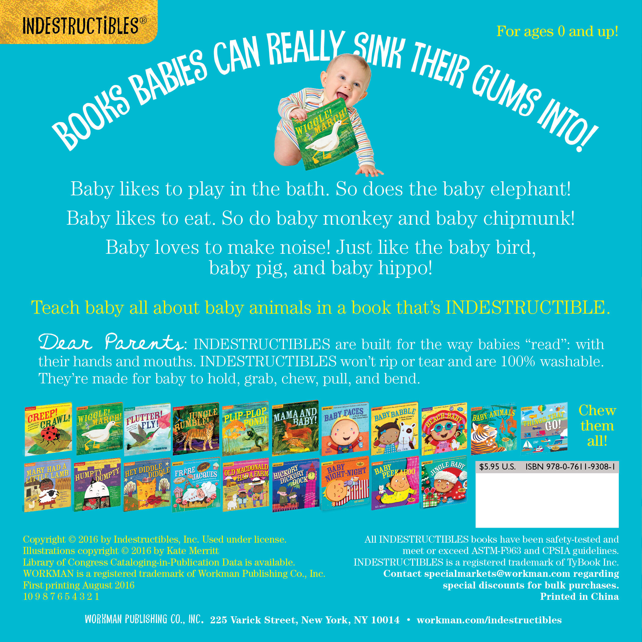 Indestructibles is the trusted series for easing little ones into story time. Beloved by babies and their parents, Indestructibles are built for the way babies “read” (i.e., with their hands and mouths) and are: