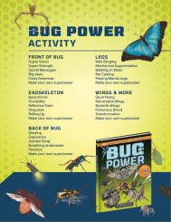 Explore bug power by creating your own super bug! Roll 6-sided dice or simply choose which powers your bug will have. Get creative with your bug and how their powers make them unique. Invent your own superpowers you’d like your bug to have. Have fun and let your imagination run wild!