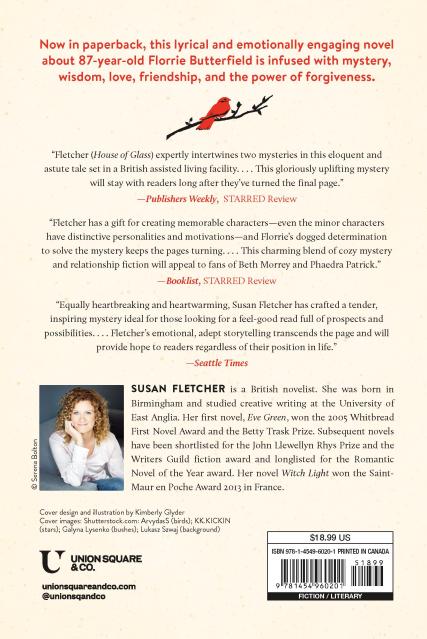 Florrie Butterfield—eighty-seven, one-legged, and of cheerful disposition—believes there can’t be any more adventures or surprises in life to experience. Yet one midsummer’s evening, there’s an accident at Babbington Hall—the adult residence where she lives—so shocking and strange that Florrie is suspicious; is this really an accident? Or is she being lied to? Is she, in fact, living alongside a potential murderer? In her efforts to learn the truth, Florrie is forced to look back on her own life, with all its passions and regrets; she must confront her own bloody secret—and, at last, forgive herself. Above all, Florrie learns, through the help of her new friend, Stanhope, that you’re never too old to have the life you’ve always dreamed of. When it comes to love, it’s never too late.