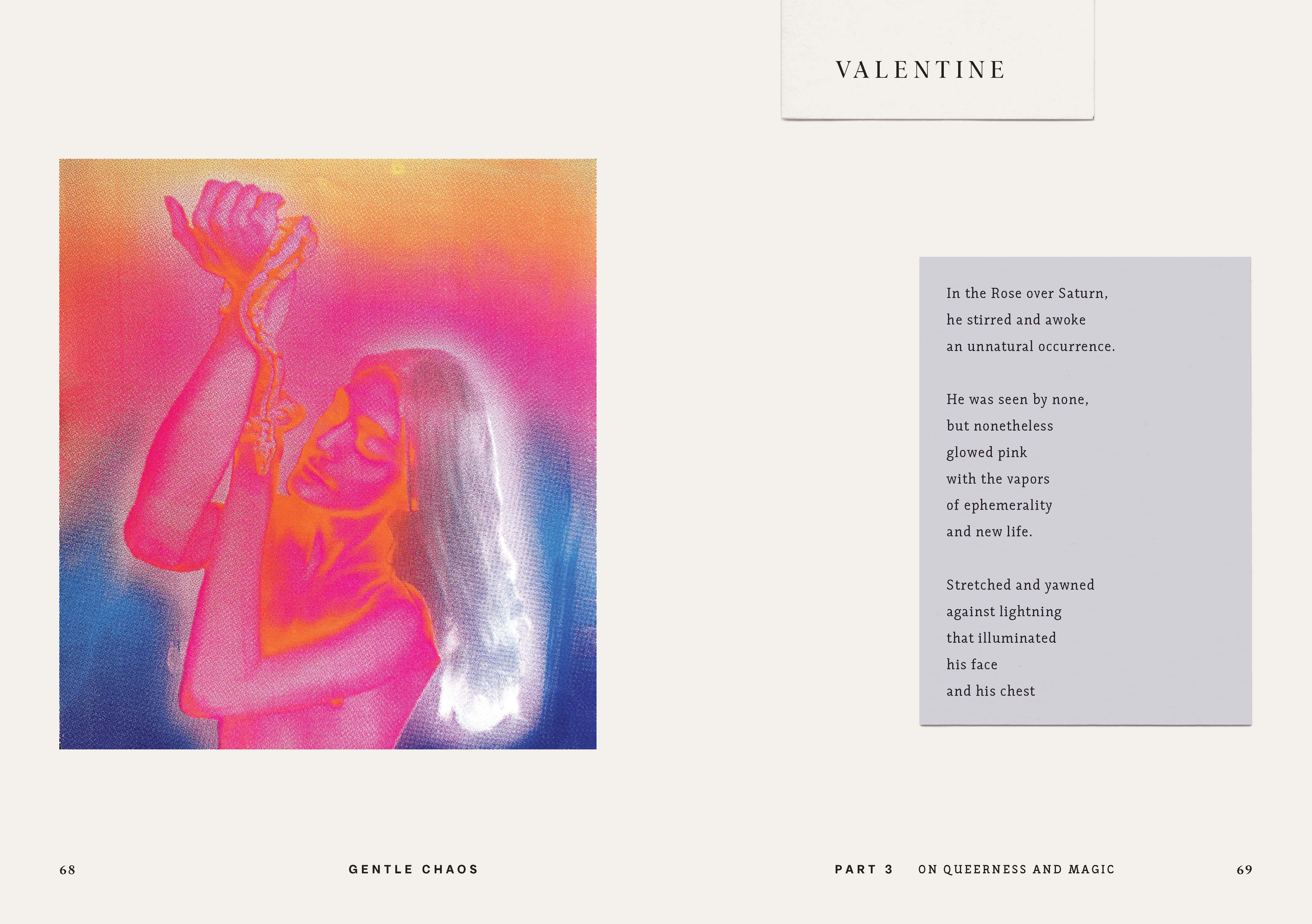 The writings in Gentle Chaos reflect on growing up queer and in love with magic, discovering yourself and your place in the world, and daring to seek out love and hope. The artworks are dedicated to salvaged antique photographs, haircuts, dead moths, the creatures we dream up, and much more. The result is a whimsical, vulnerable, and transporting journey into the gentle chaos within us all.