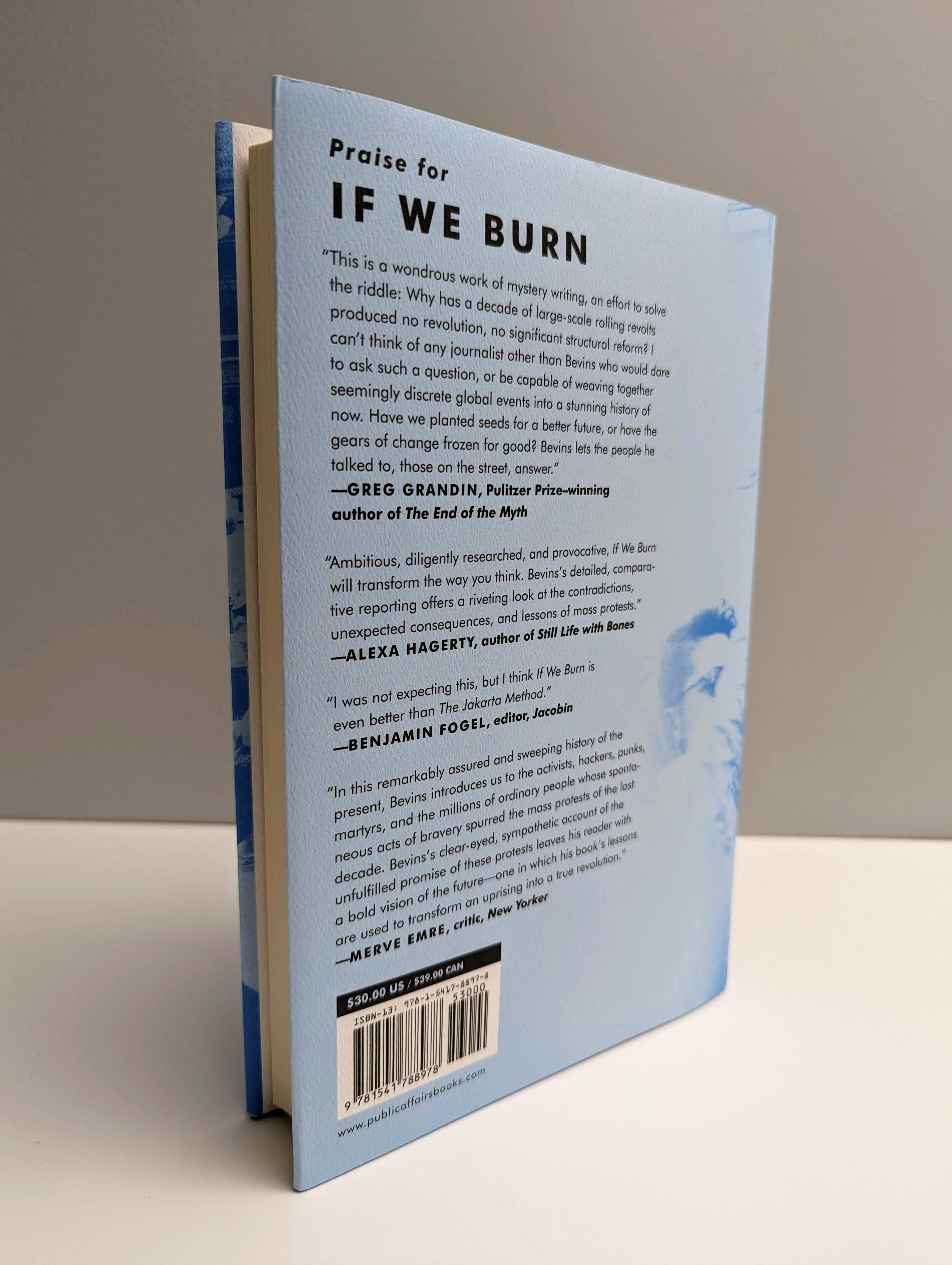 “The best book I read this year… If We Burn is a globetrotting journey of historical reportage. Bevins conducted more than 200 interviews in 10 countries. Attentive to local particularities, he diligently retells how each protest developed before zooming out to ponder the implications for the ‘mass protest decade’ and consider what would be required for such movements to succeed in the future.”Eamon Whalen, Mother Jones