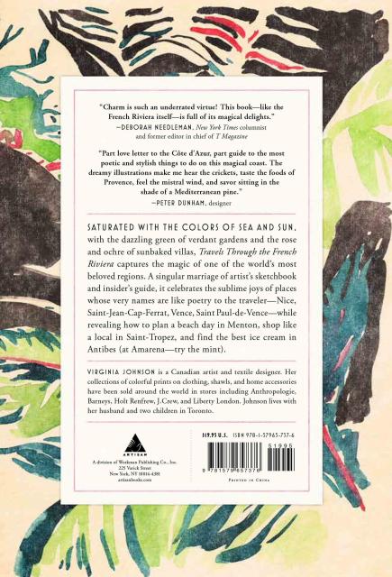 In this irresistible marriage of watercolorist’s sketchbook and traveler’s guide, Virginia Johnson lovingly captures the magic of one of the world’s most storied regions, the French Riviera. We walk the Promenade des Anglais in Nice. Shop for handmade sandals at Rondini in Saint-Tropez. Visit the Madoura workshop in Antibes, where Picasso discovered his genius for pottery. Meet legendary characters like Pierre Gruneberg, a swimming instructor who taught Jean Cocteau, Brigitte Bardot, Paul McCartney, and many others.