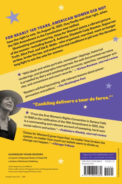 “With a strong storytelling voice, Winifred Conkling offers readers a captivating account of the long-fought battle for women’s suffrage in the United States . . .Votes for Women! is an important, inspiring, and timely book.”