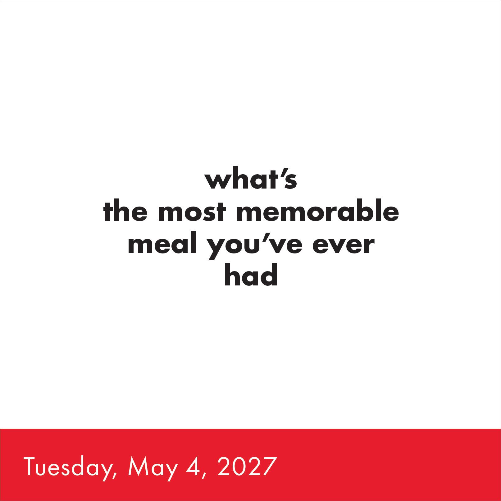 - FUN AND THOUGHT-PROVOKING: Each day brings a new question designed to get you thinking, with topics covering everything from first friendships to your life’s passion to TV shows.