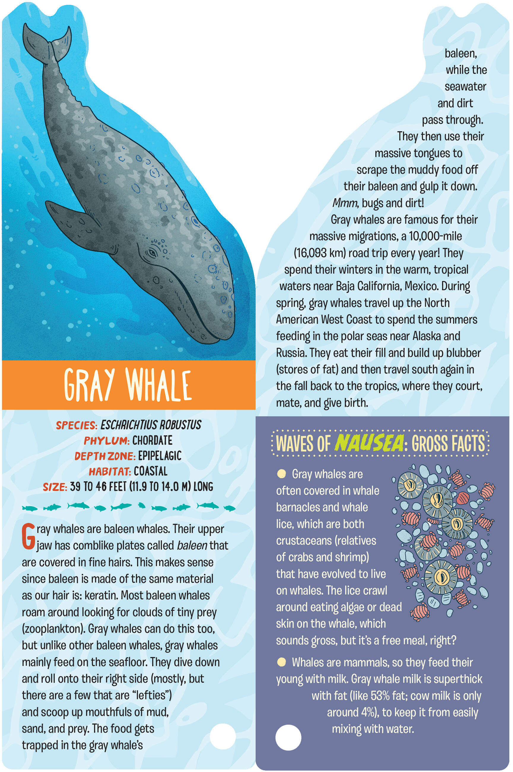 Meet Cuvier’s beaked whale, a mammal that holds the record for holding its breath underwater— 3 hours, 42 minutes! Giant kelp, which can grow up to 2 feet every day— that’s right, 2 feet! And the ancient coelacanth—often called a “living fossil”—which has changed very little in 400 million years and was once assumed to be extinct. With bold illustrations, each card in Fandex Kids: Oceans includes information about the creature’s size, habits and habitat, plus bonus Fin Facts.