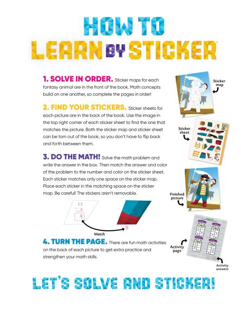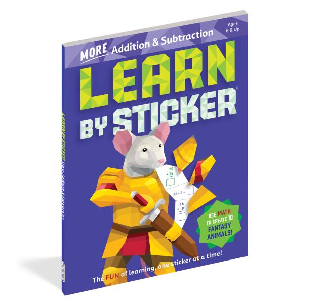 In Learn by Sticker: More Addition and Subtraction, solve second grade-level addition and subtraction problems and use the answers to determine where to place each sticker to create ten sticker images of charming fantasy animals. Plus, the back of each sticker page contains fun, critical thinking-based math activities like solving riddles, decoding secret messages, and more.